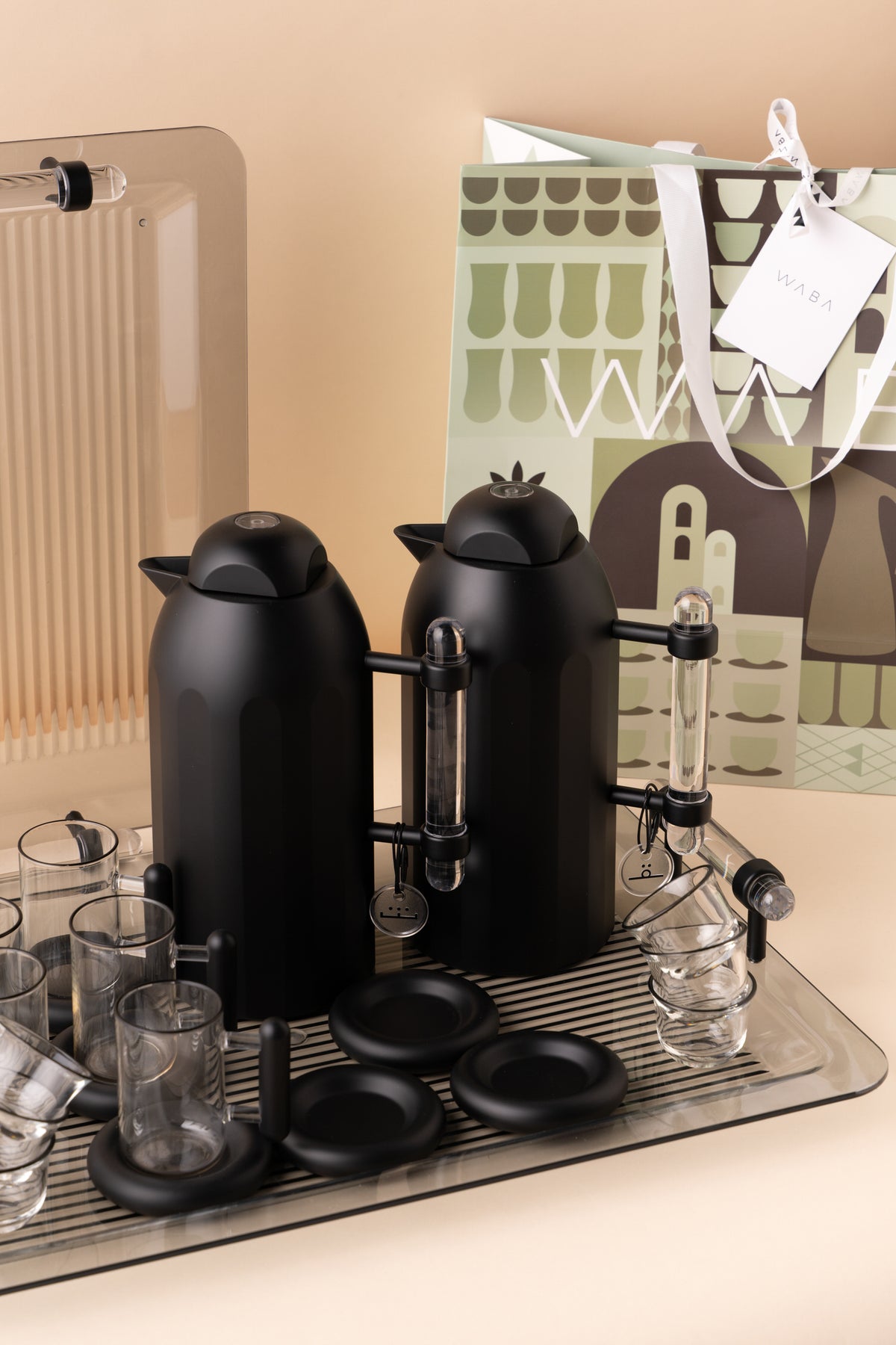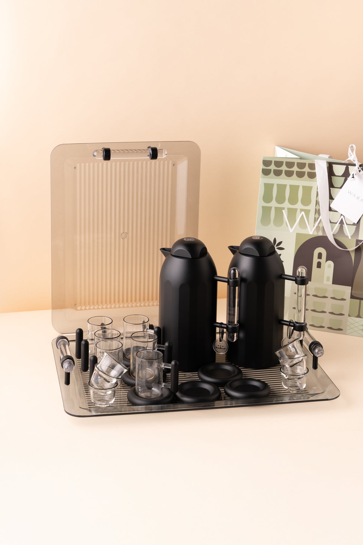 الطقم مصنوع من زجاج مزدوج الجدار لعزل الحرارة