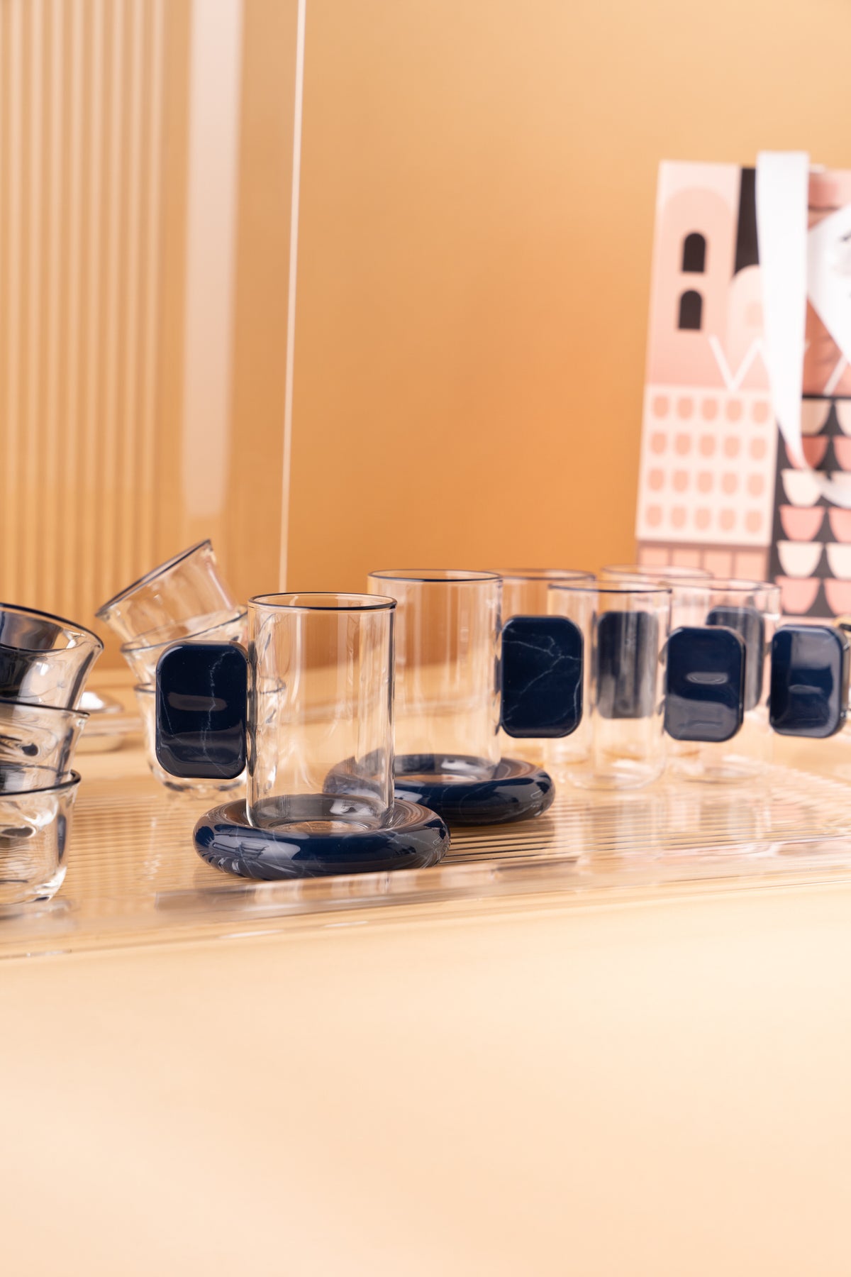 الطقم مصنوع من زجاج مزدوج الجدار لعزل الحرارة6 استكانات