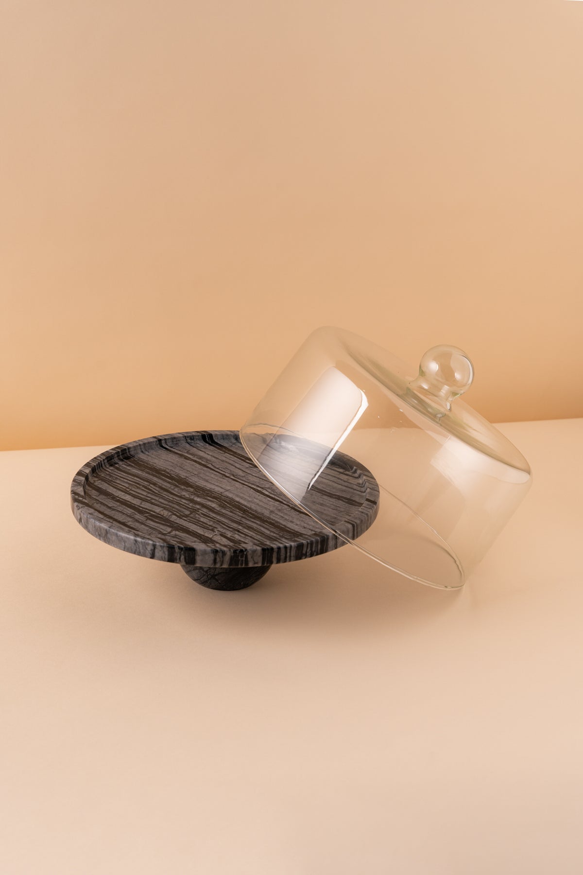 Marble Serving Stand with Glass Cover